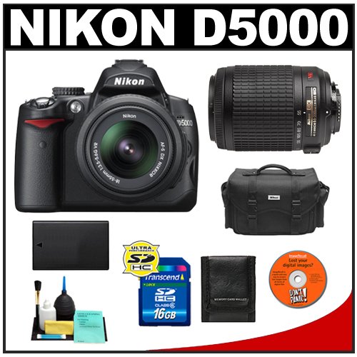 Buy Nikon D5000 Digital SLR Camera with 18-55mm VR Lens + 55-200mm VR Zoom Lens + 16GB Memory Card + Spare EN-EL9 Battery + Case Now